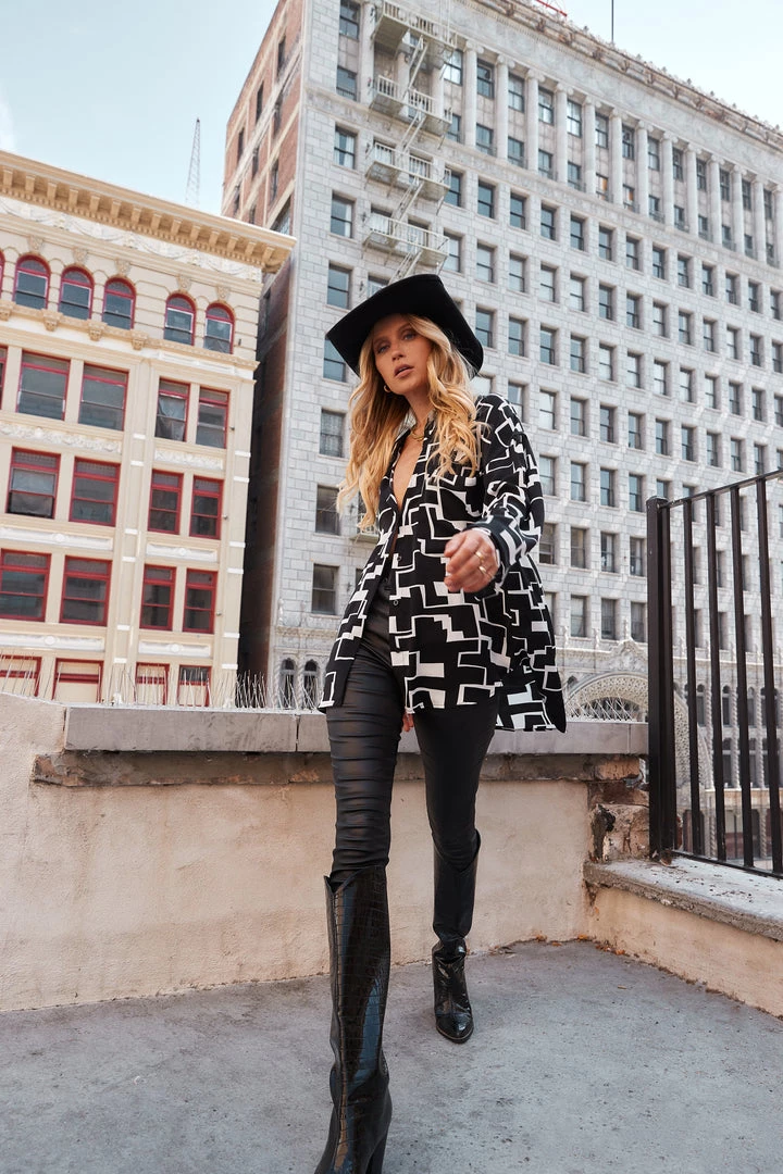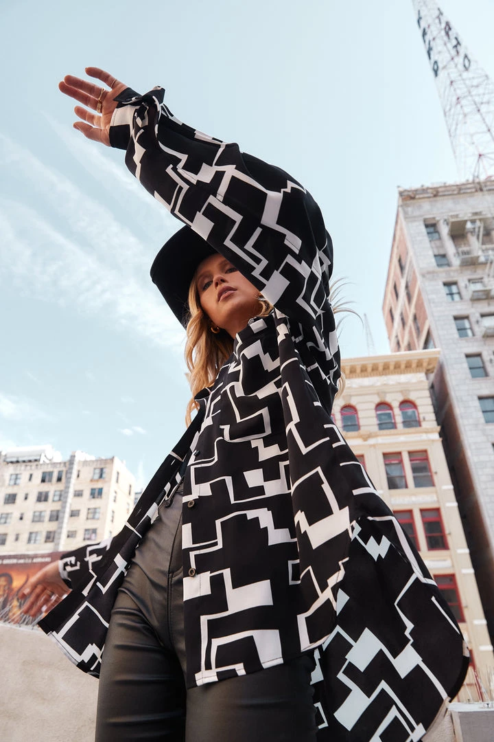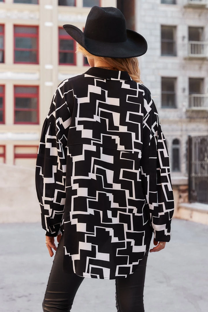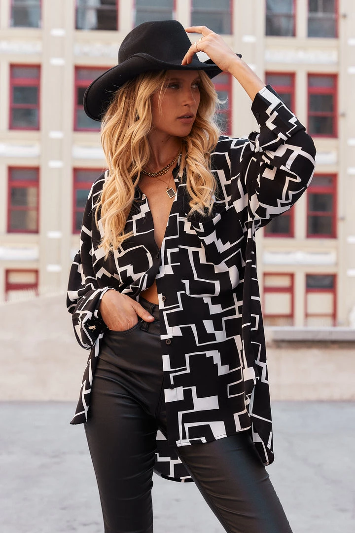 – abstract black and white button up blouse