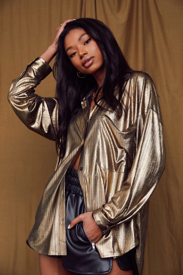 This oversized blouse is meant for that friends night out or first date vibes. The loose fit is perfect over any type of bottom pairing. Tie it up as a crop top to add some edge. The Ashland is your go to blouse to feel your most confident.