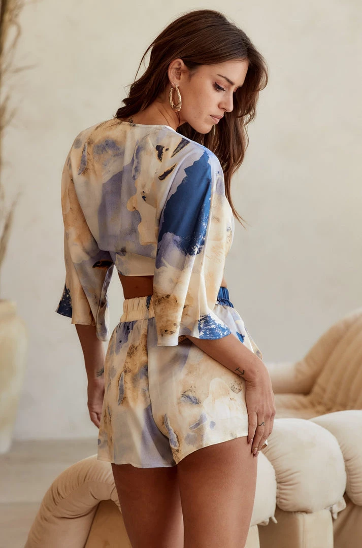 Spend the day in your pool side cabana wearing the effortless and breezy Moana Set. This top pairs perfectly with the Moana Kimono and Moana Shorts, making you best dressed on your island getaway!Â