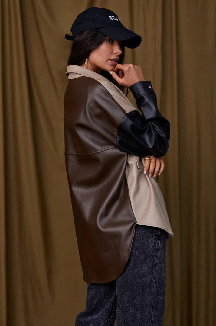 When you keep coming back for more, we have to give you a colorblock version of our Owen Jacket! A lightweight vegan leather jacket is exactly what your closet needs. A transitional piece from season to season, this jacket will be the final detail to complete your look!