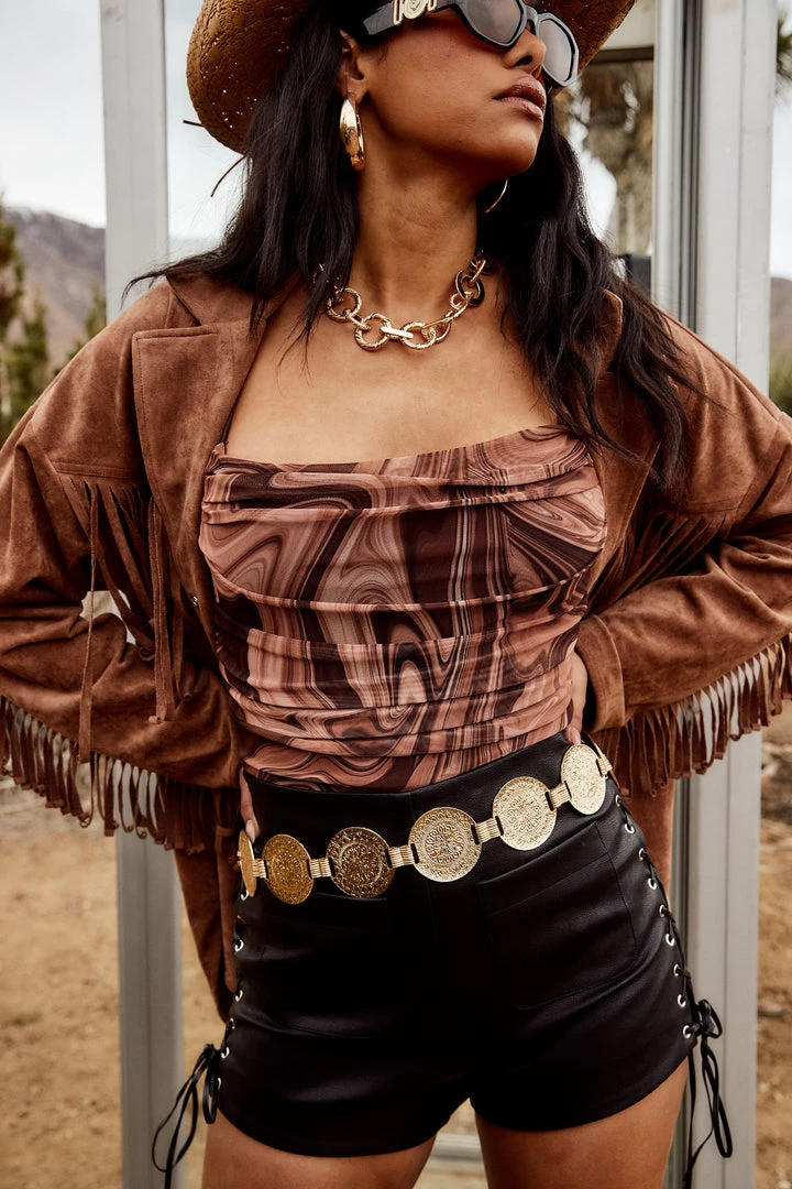 Ladies, we know how trendy you are so we don’t need to educate you on how hot the Daytona Bodysuit is. We had to put a funkier spin on this bodysuit for those girls who know what’s good. The lining on this baby is extremely comfortable and stretchy, so you don’t have to worry about comfort on this one. Pair with a rad fringe jacket and your fav pair of leather shorts, and get ready to blow everyone away.