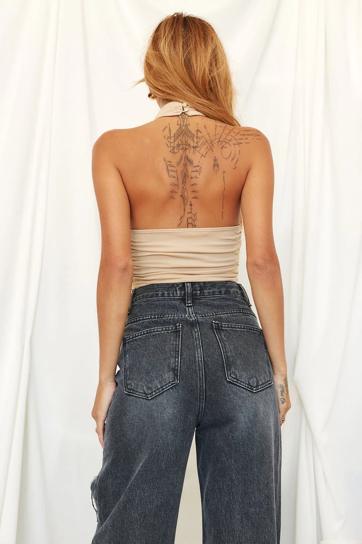 – sand turtleneck halter tank