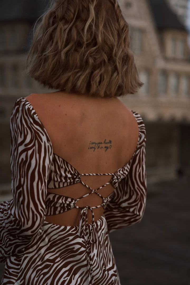 – brown zebra mini dress