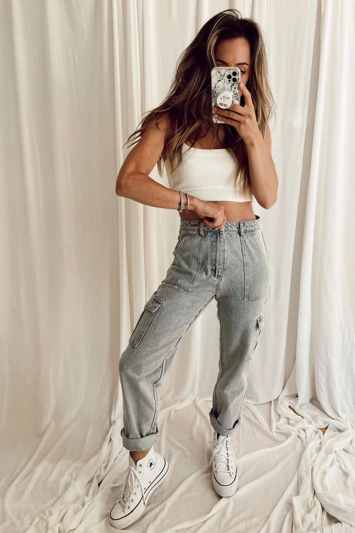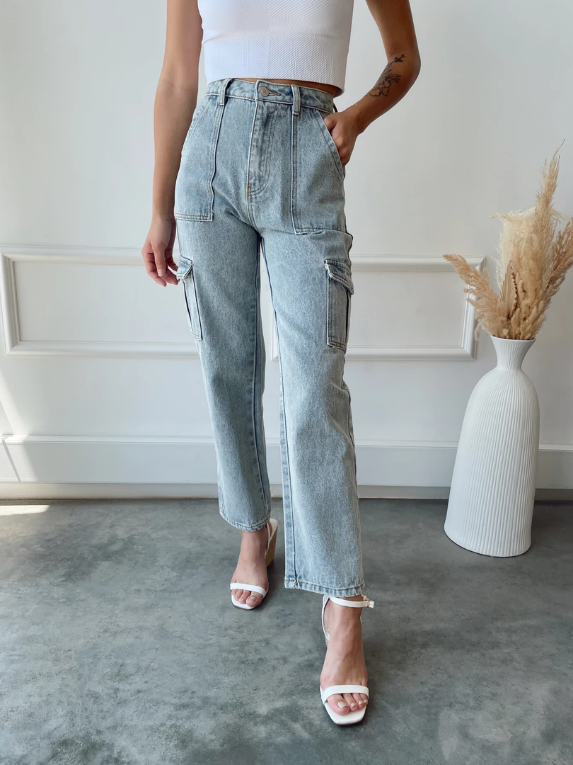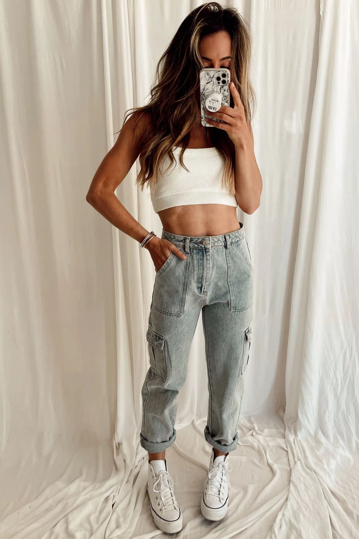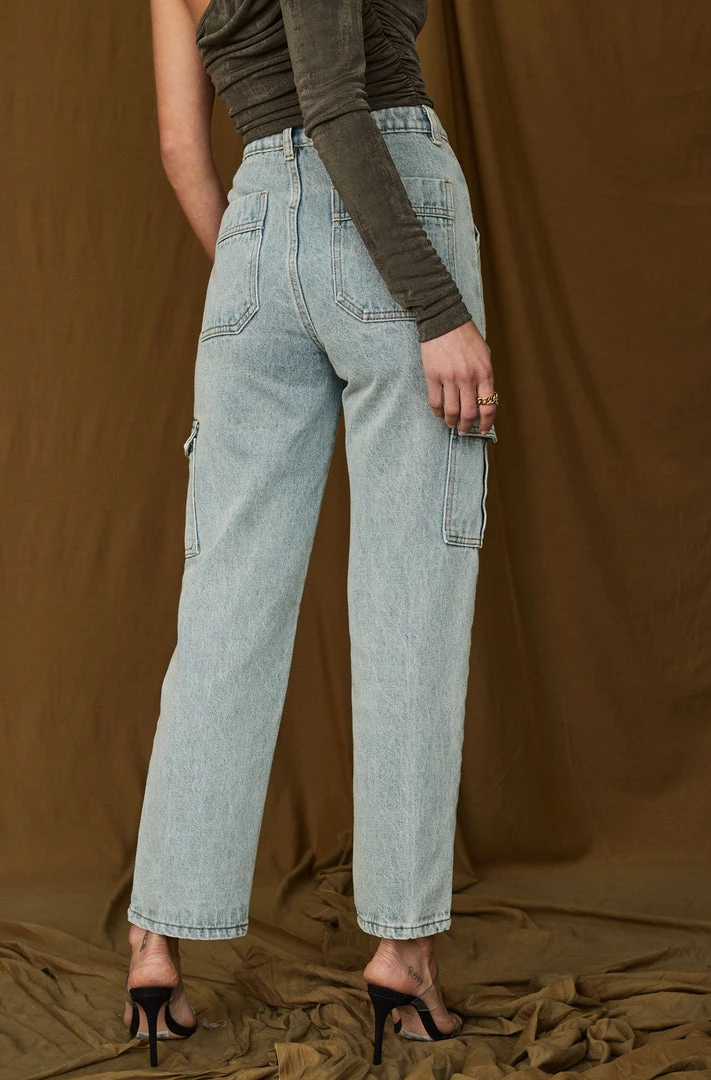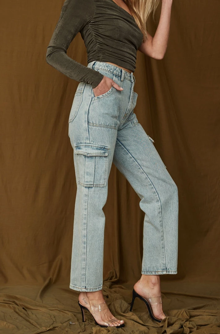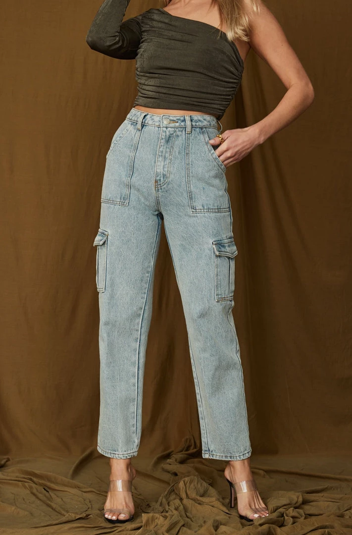 – high rise light wash jeans
