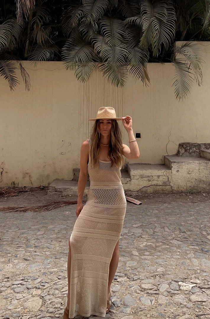 –Â beige crochet maxi dress