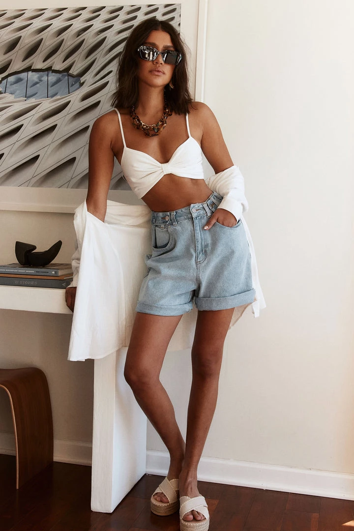 You heard the little secret here first… linen is it this season! Perfect for your day to night look, this linen crop top is designed with a light weight fabrication and a flirty fit… it is impossible to pass up! Complete the look with the Little Secrets Linen Shorts and Button Down!
