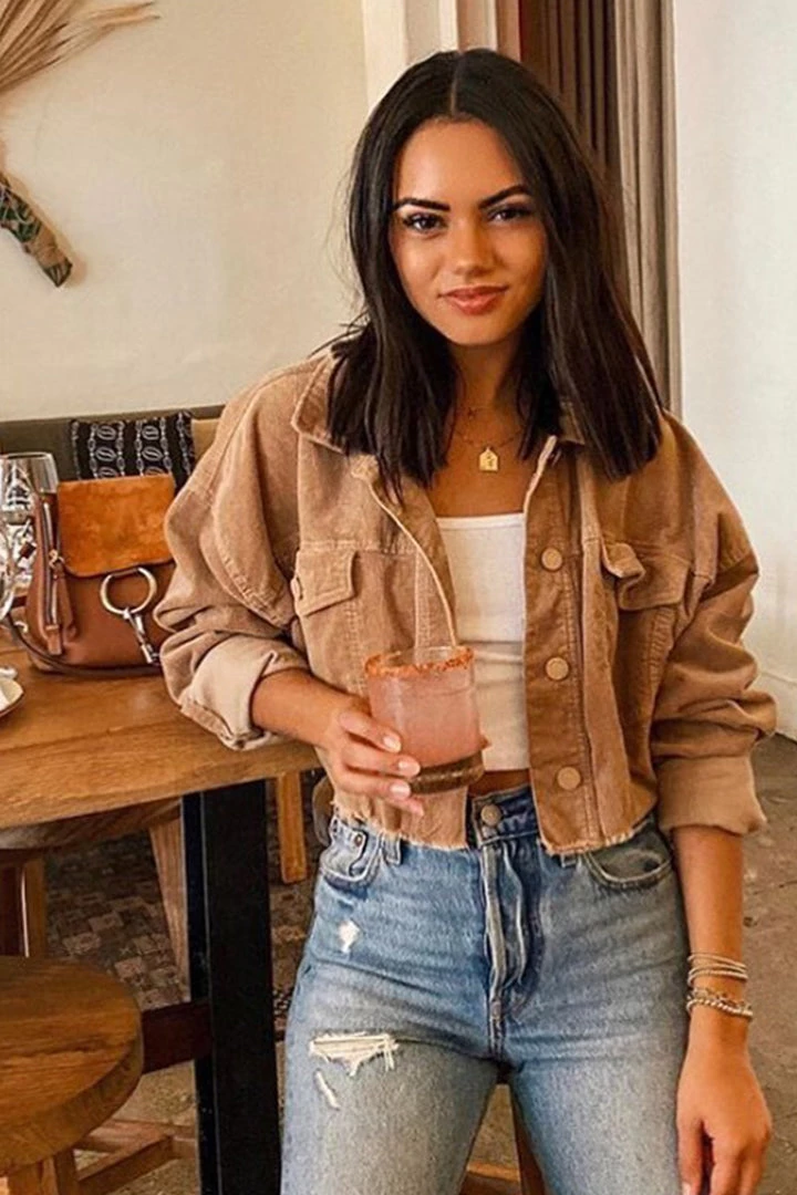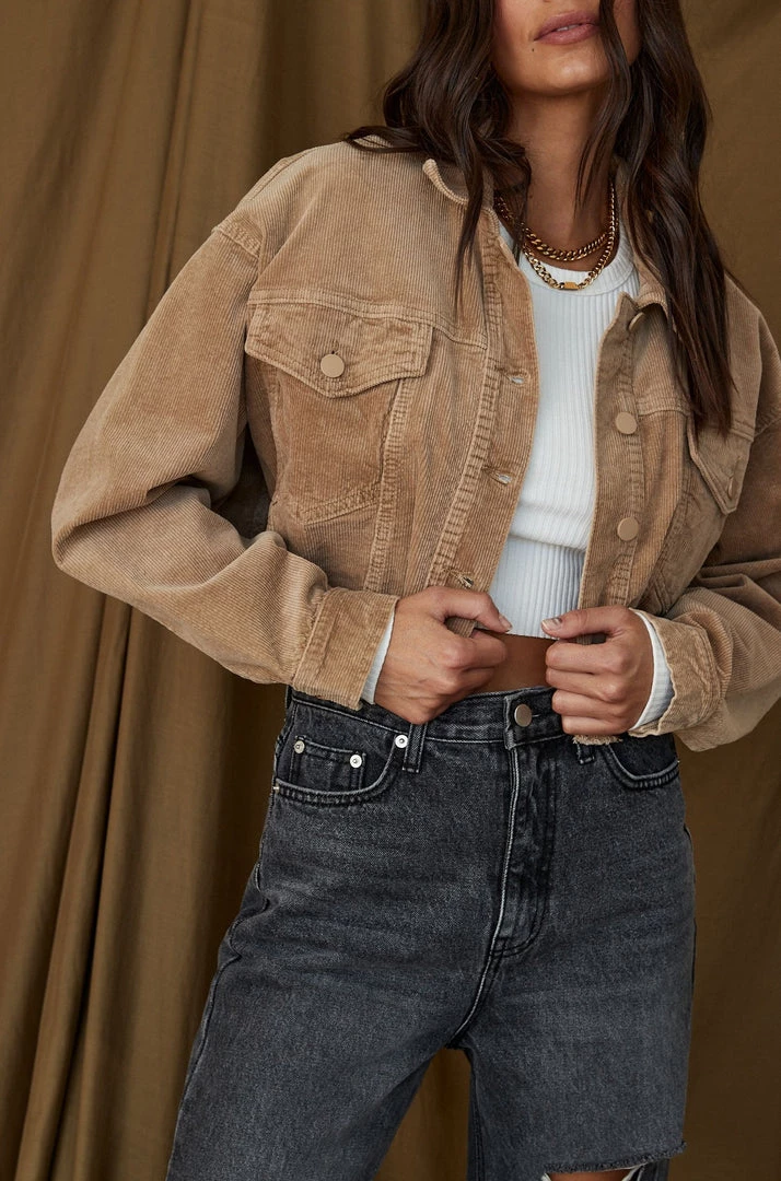 Sweet but savage in the Nobody’s Baby Brown Corduroy Crop Jacket. The ideal thrown on jacket that gives that edgy cool girl vibe that we all crave. With the frayed detailing on the bottom, it’s sure to cause a commotion.Â