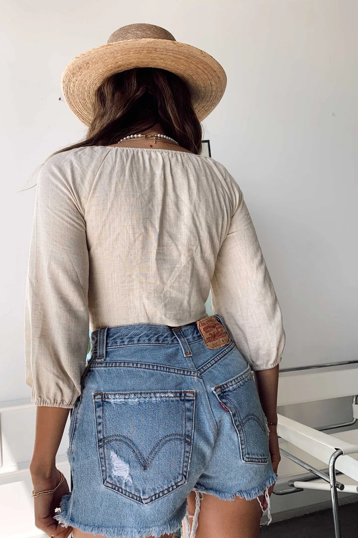 – Cropped Linen Wrap Top