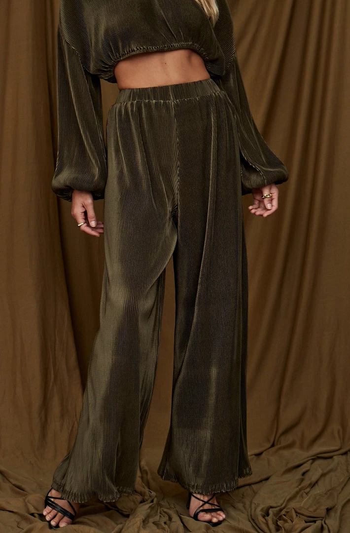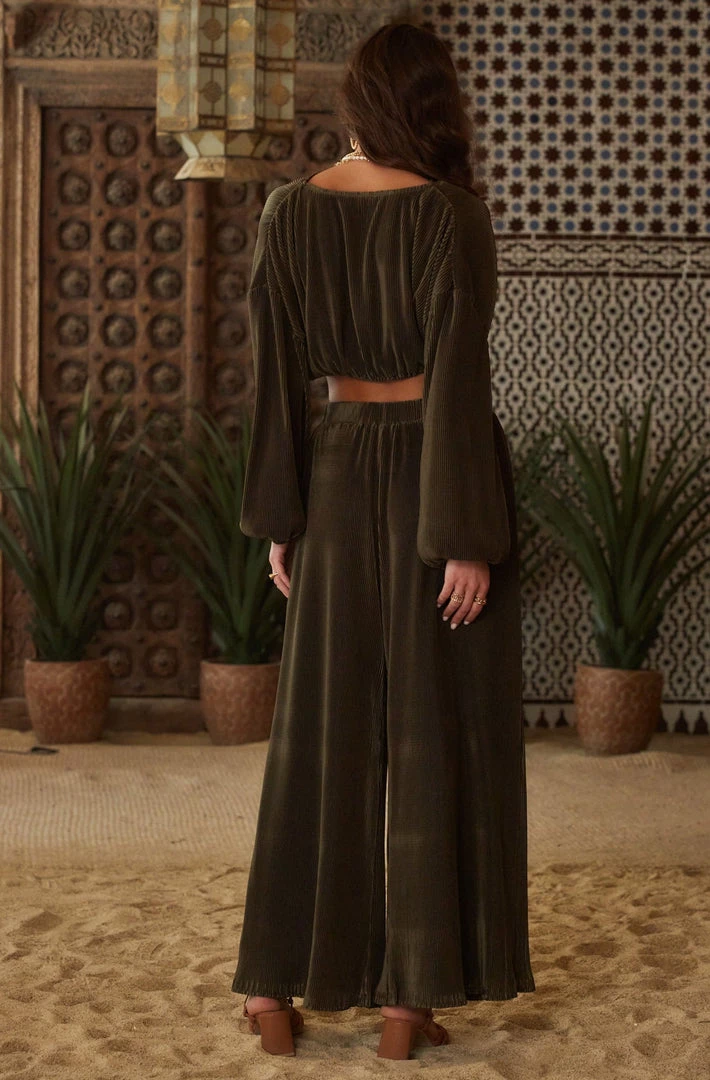–Â Olive pleated wide leg pants