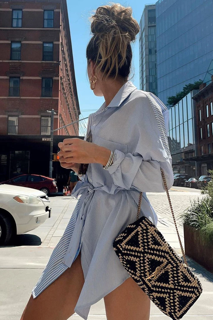 – contrast pinstripe mini dress