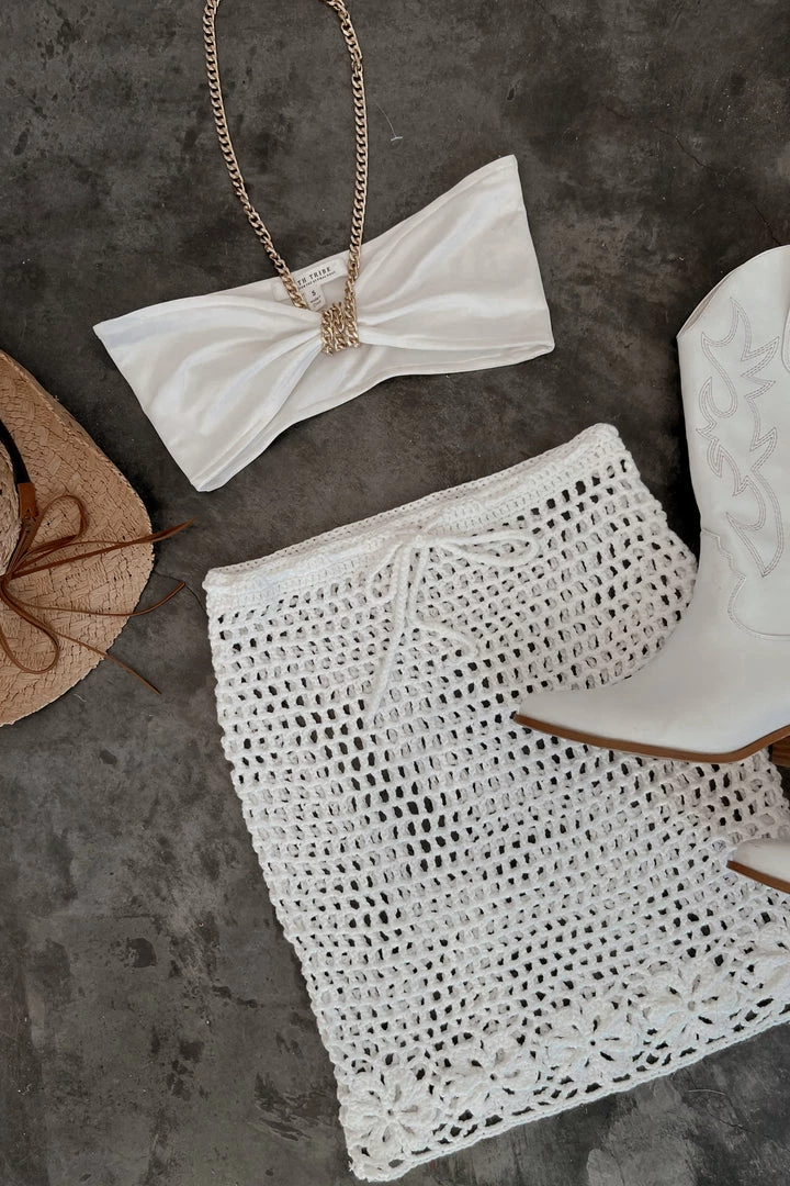 Get swept off your feet in the Carried Away Crochet Skirt! The ultimate coverup for a beach or festival look. It’s breathable, comfortable, and allows for movement – the perfect combination to transition from day to night.