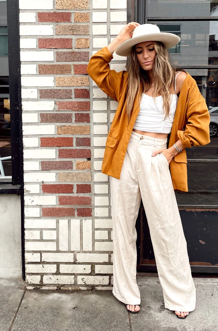 Your spring fit just got that much better thanks to the Jaxon Cream Trousers. Wear from work to happy hour, these pants are easily dressed up or down. Style with your favorite crop, our Isla Straw Fedora, a pair of strappy sandals, and you’re set for the entire day!