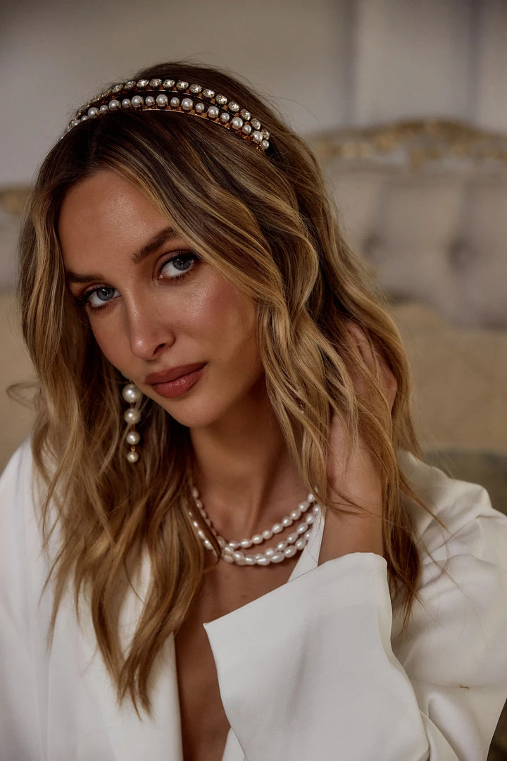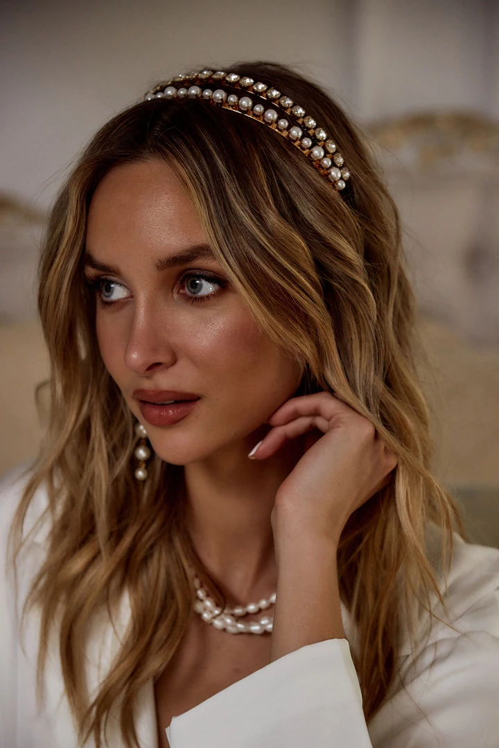 – gold rhinestone and pearl double headband