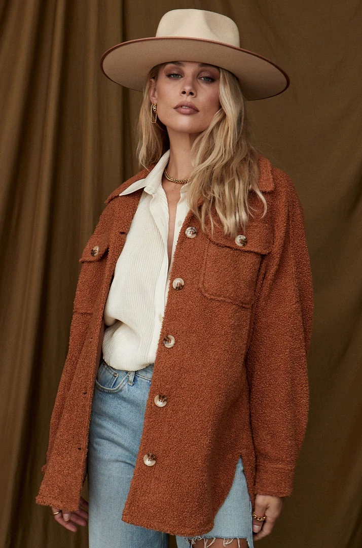 – rust sherpa shacket