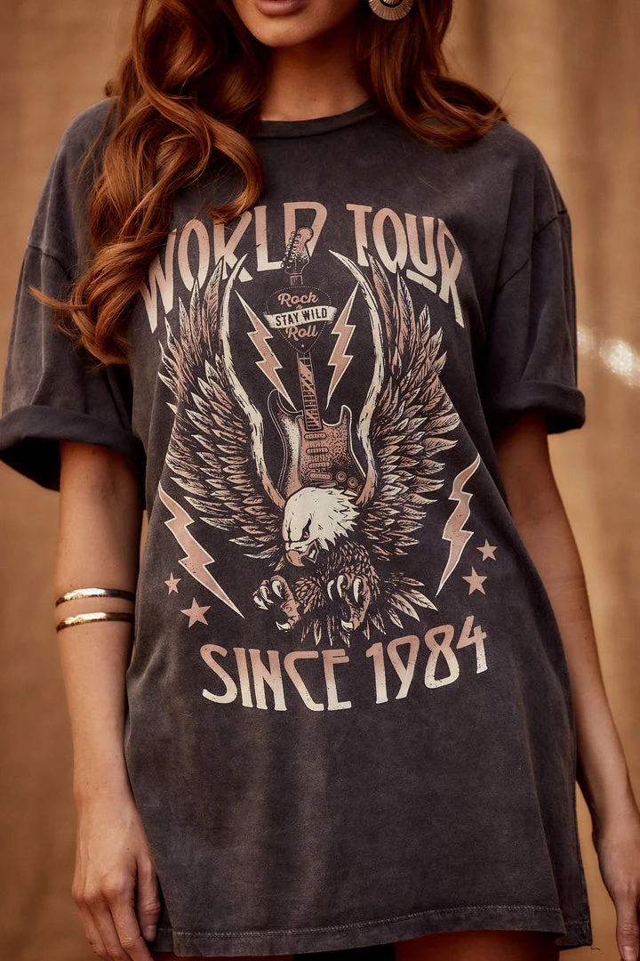 Trust us when we say we know how to glam up your classic tee. Join us in venturing back to 1984 and reliving the early days of enjoying live music. Order a larger size to rock this tee as an oversized dress, or style with denim shorts, a statement belt, and an amazing cowboy hat… you’ll look flawless!