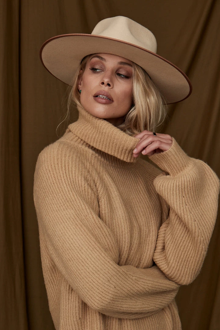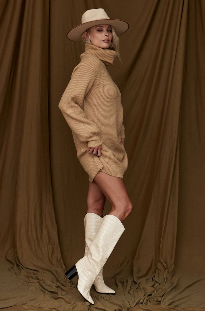 – camel knit sweater dress