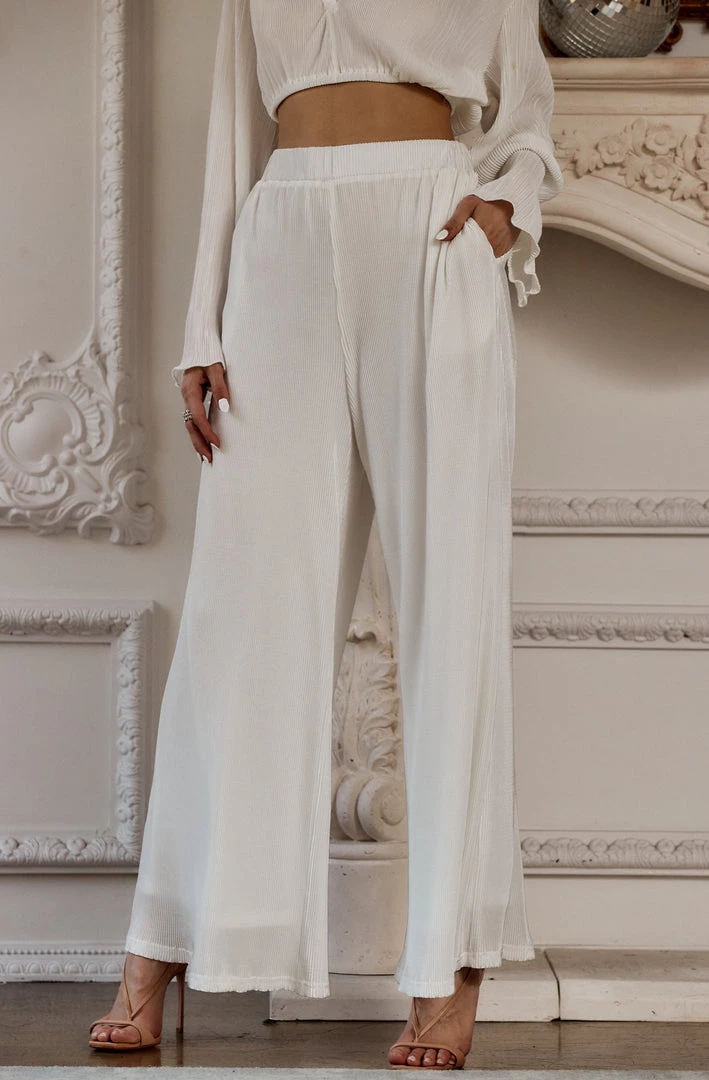 The need for adventure called and the Maison answered! Perfect for your Italy bound honeymoon, these pants are designed with a soft, pleated fabric that’s luxurious yet casual for an all day adventure. Pair with its perfect match, the Nicole White Top, and you’ll be so thankful you did!Â