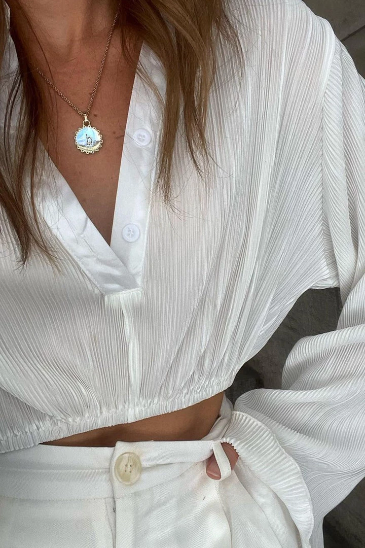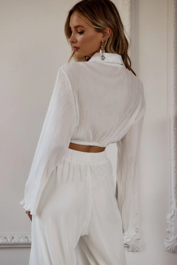 Need something elegant and breezy? Well, the Nicole Top is for you! Perfect for your coastal honeymoon, this top is designed with a soft, pleated fabric that’s luxurious yet casual for an all day adventure. Pair with it’s perfect match, the Maison White Trousers, and you’ll be so thankful you did!Â