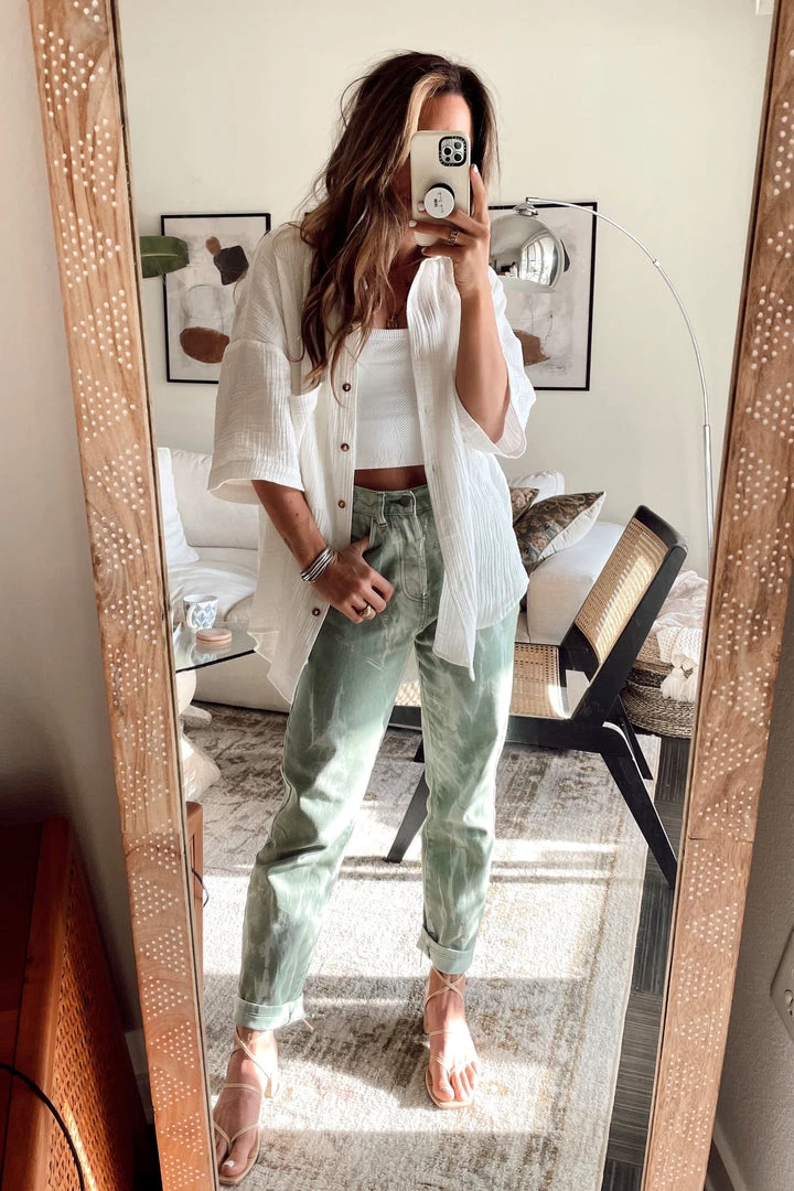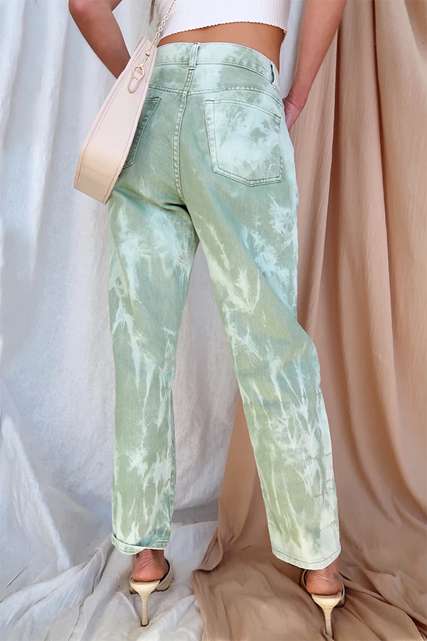 – Green woven tie dye pants
