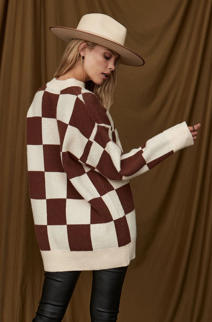 –Â oversized checkered brown and cream sweater