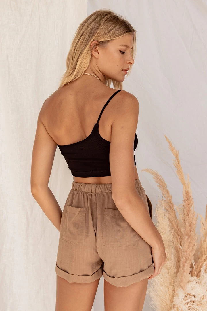 Not your everyday basic. This Elsie Black One Shoulder Cami changes up your layering game, and gives you better options with one shoulder tops.Â
