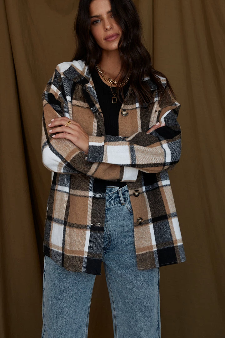 – brown, white, and black fleece flannel